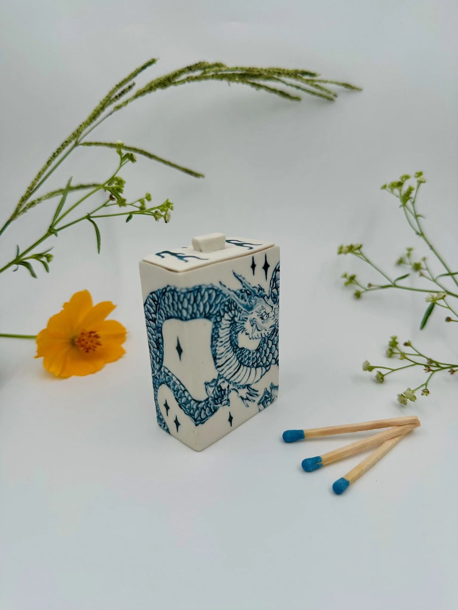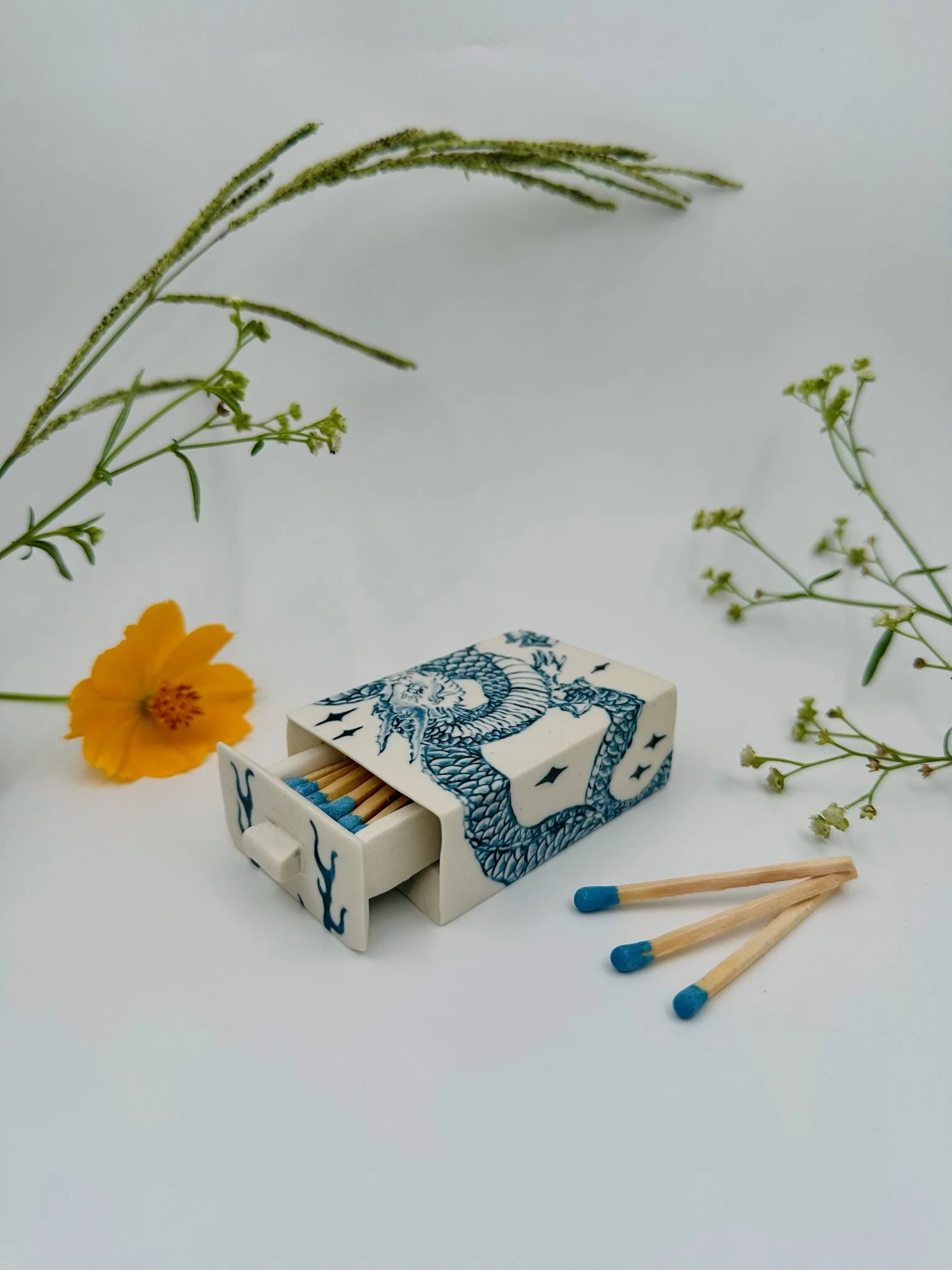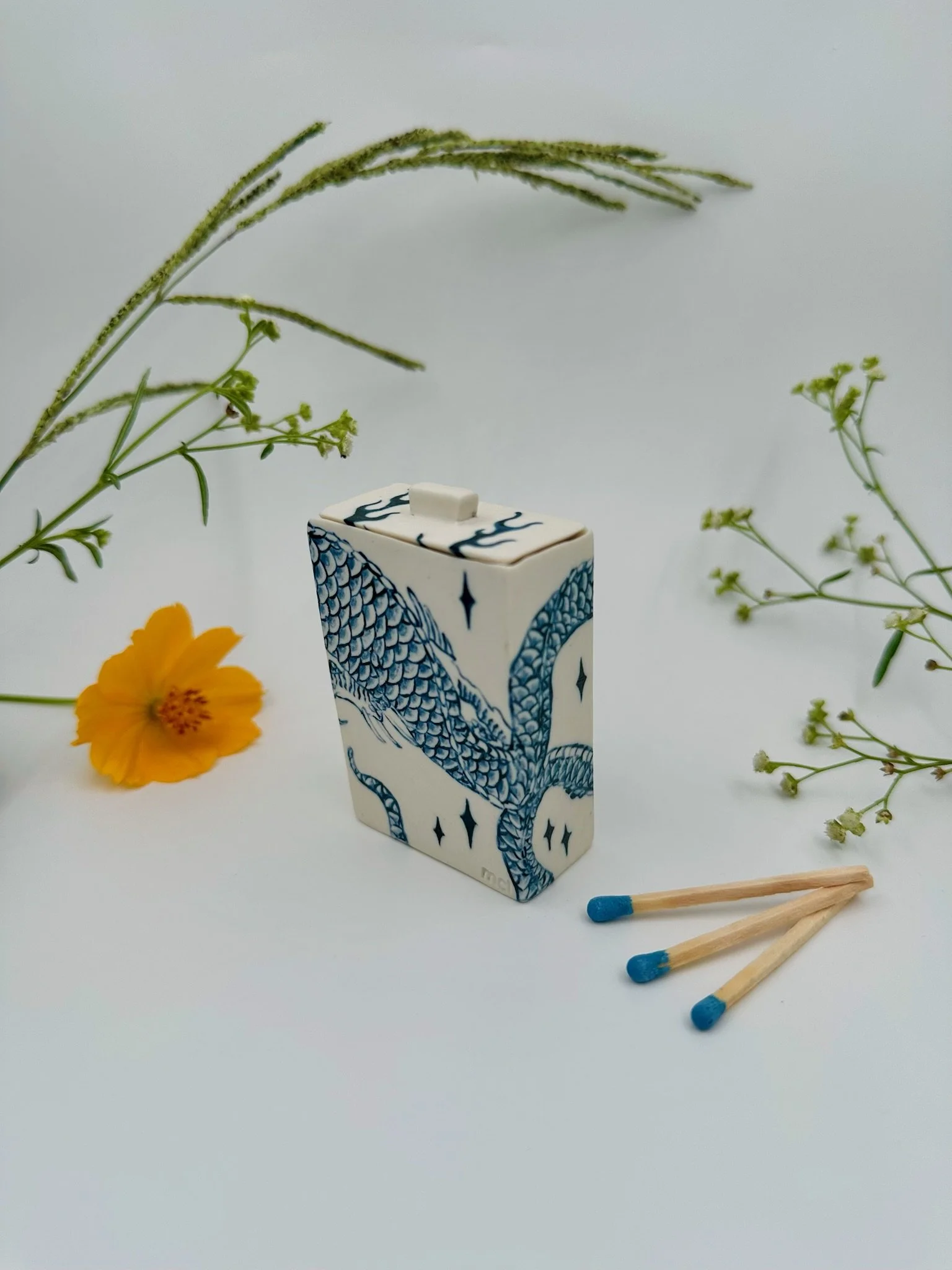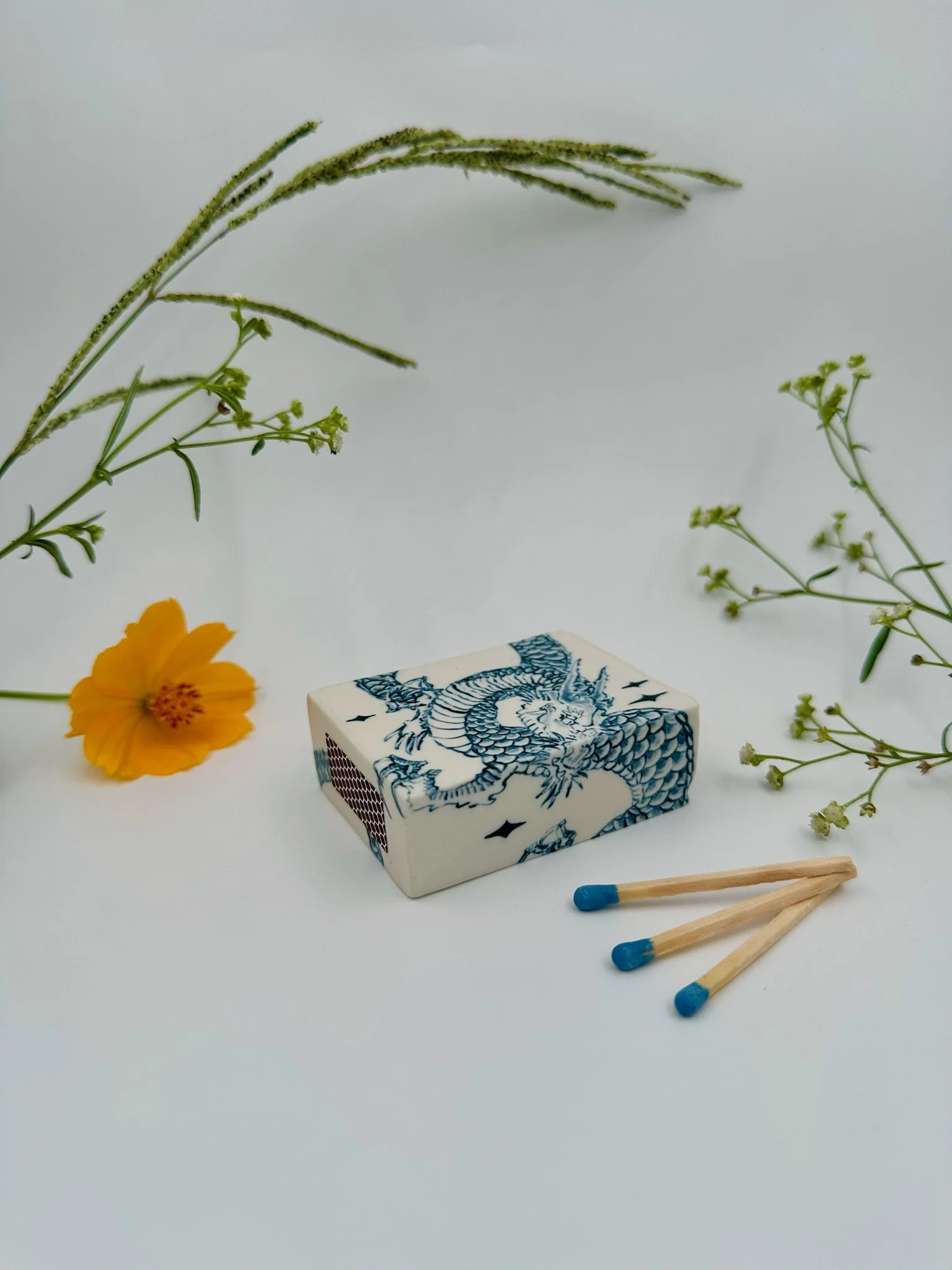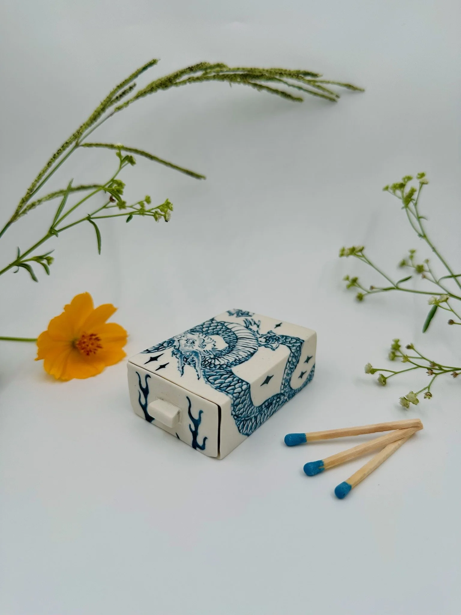 Please note that each matchbox is handmade, and therefore may contain small cracks or imperfections. This is part of what makes them one-of-a-kind.
